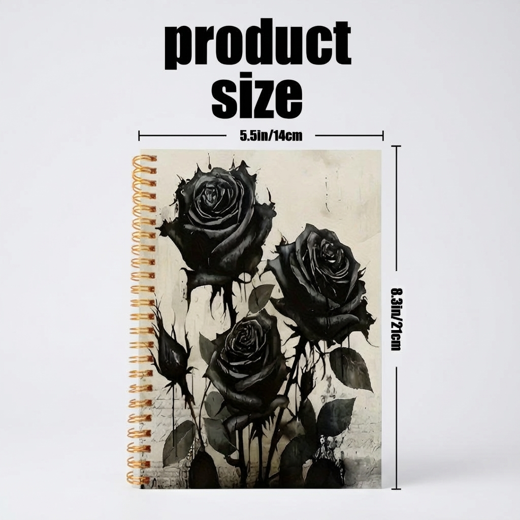 1pc Black Roses Notebook with Spiral Binding – Artistic Gothic Design, 5.5x8.3in, 50 Pages – Perfect for Writing, Journaling, and Unique Gift Ideas