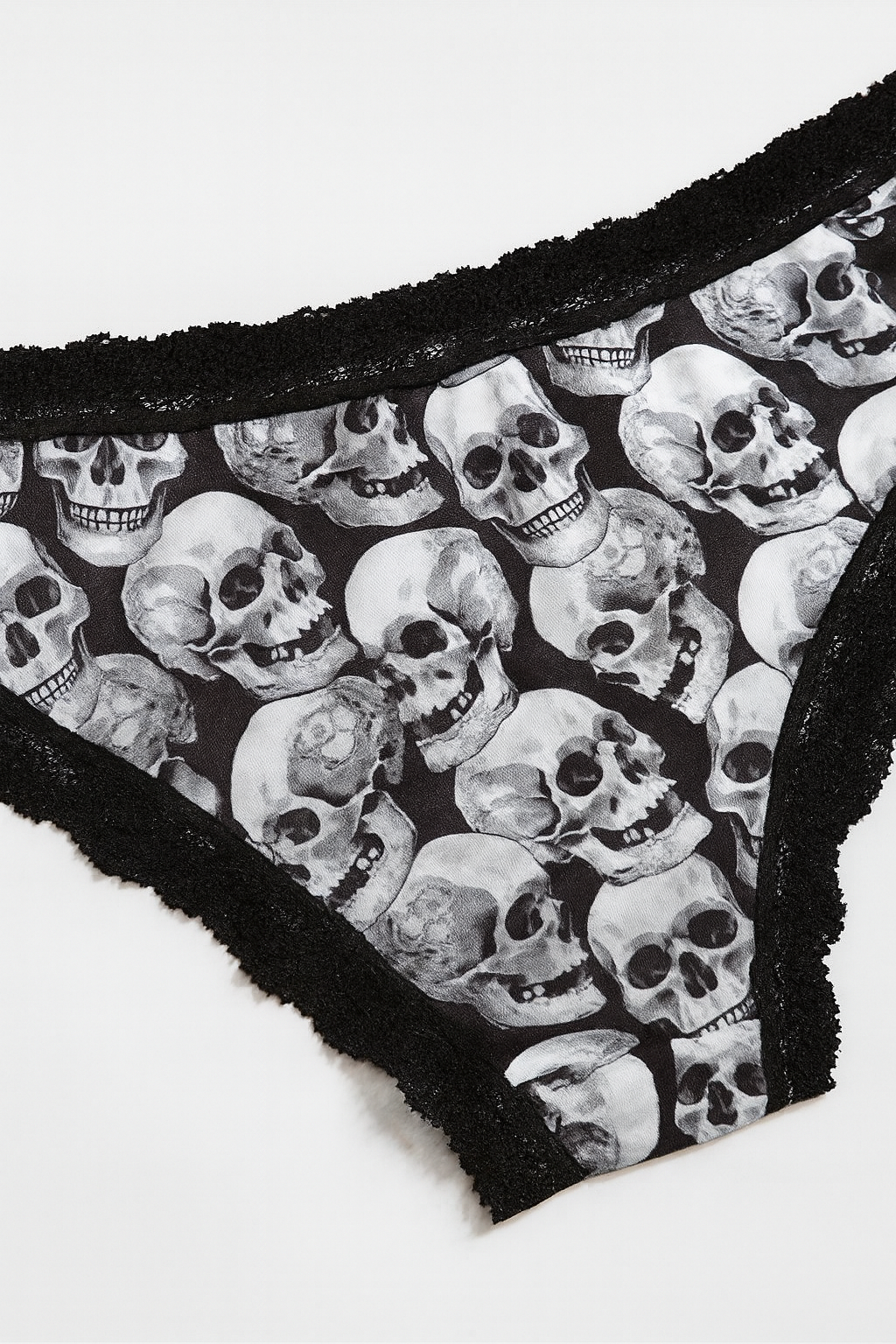 4pcs Gothic Women’s Lace Hipsters - Halloween Skull, Eyeballs, Stars & Mushrooms Allover Print Low-Rise Panties with Contrast Lace Trim, Comfy Stretch Intimates for Women