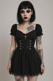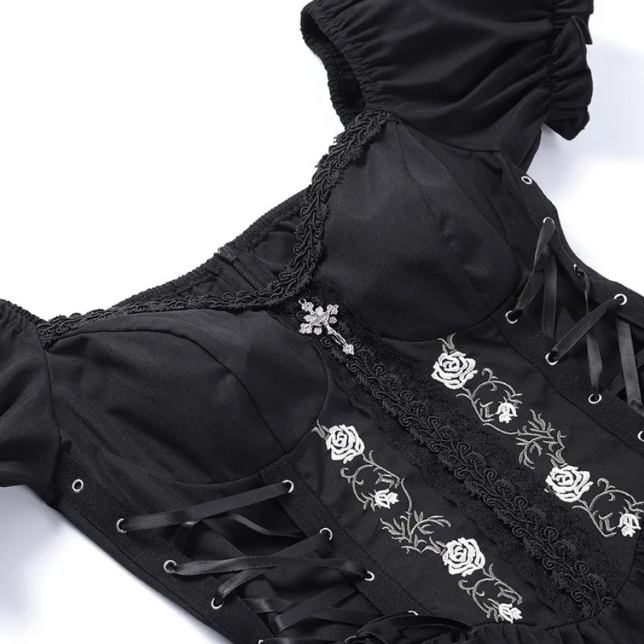 - Features intricate lace detailing and a corset-style front, perfect for gothic clothing enthusiasts.