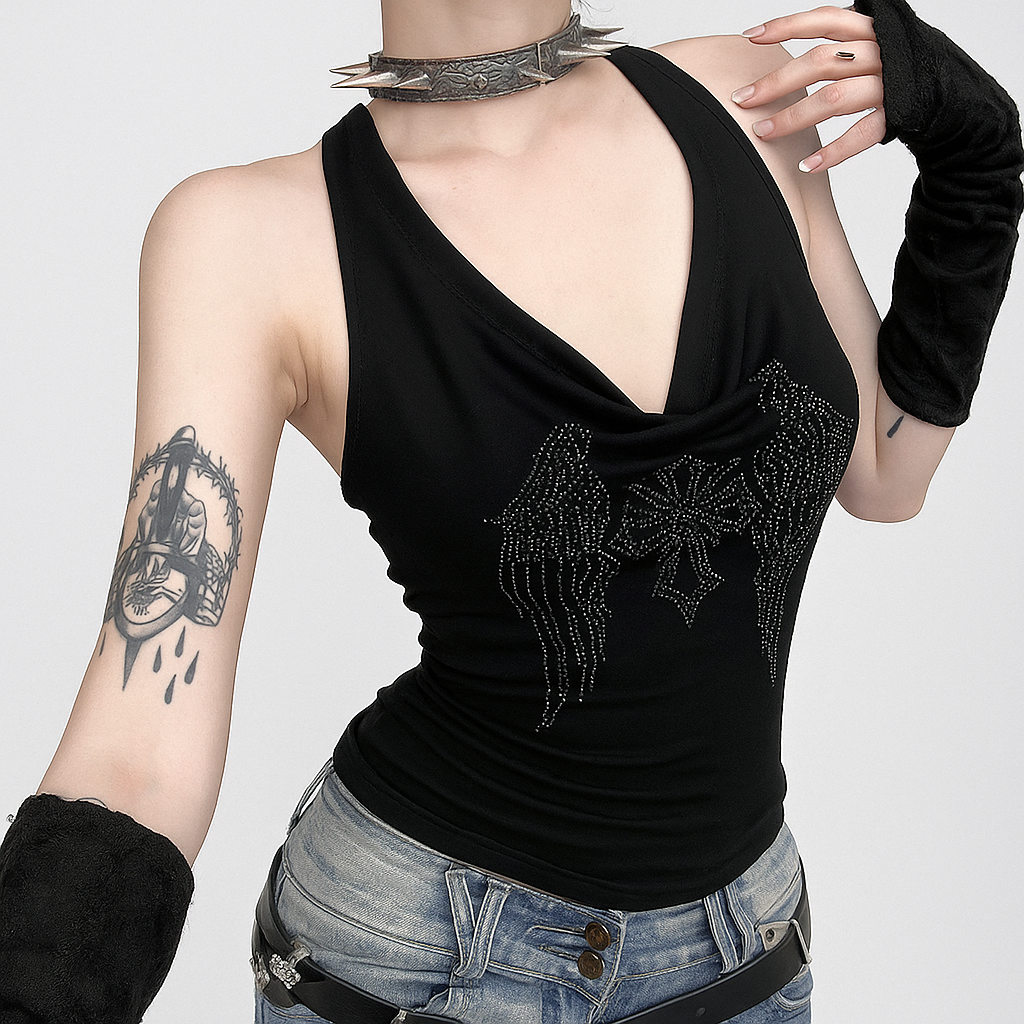 DARK CROSS CRYSTAL BACKLESS TANK TOP.