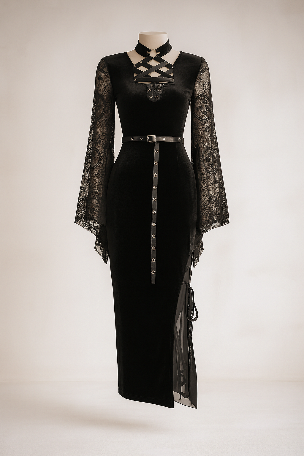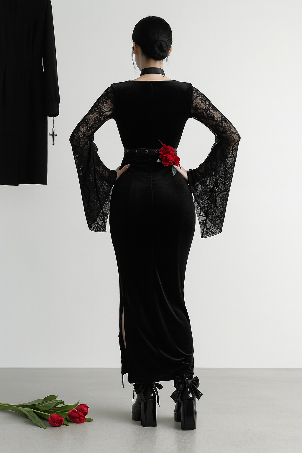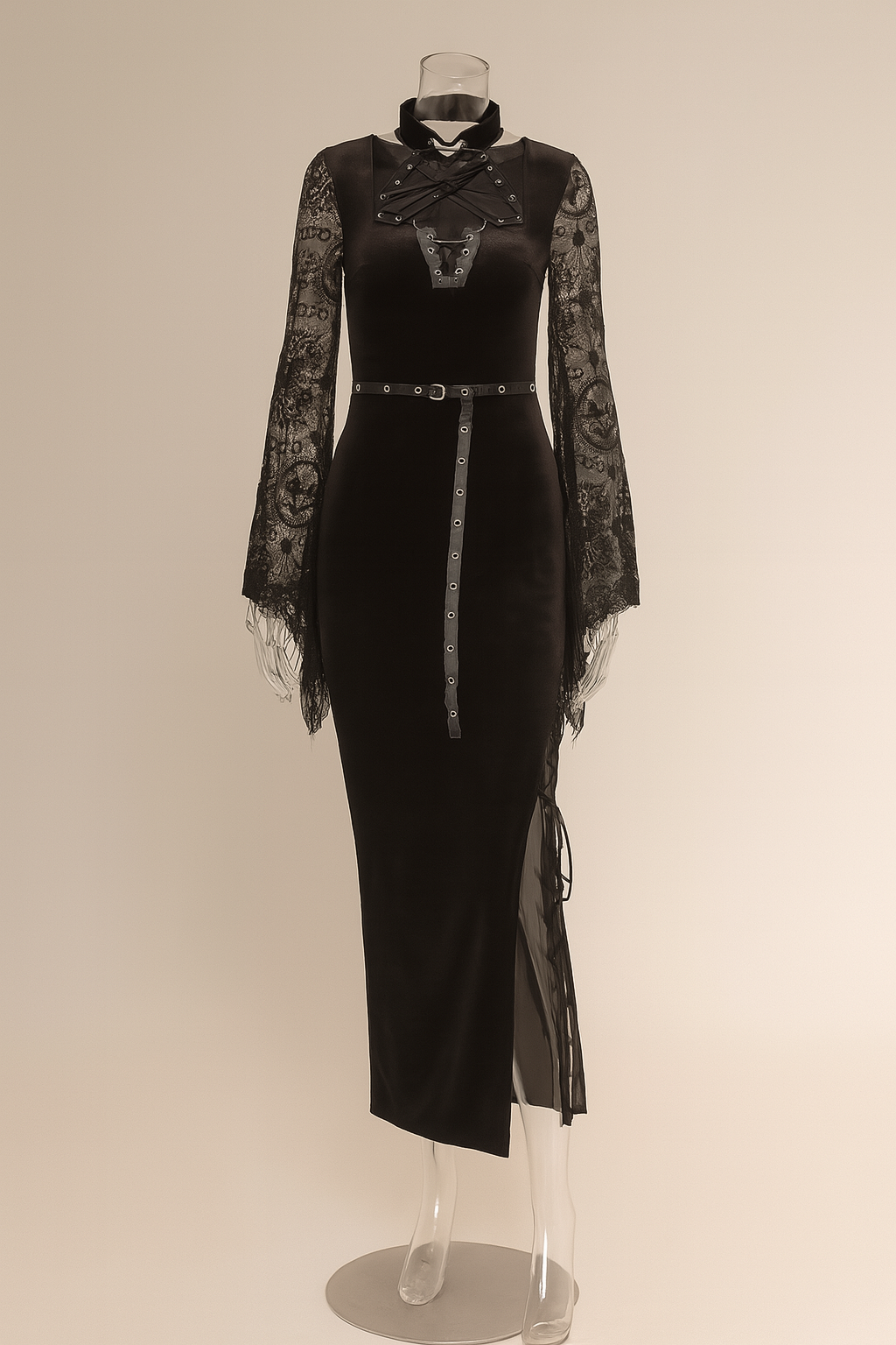 Gothic Belle Dress with Flared Sleeves and Sultry Side Slit