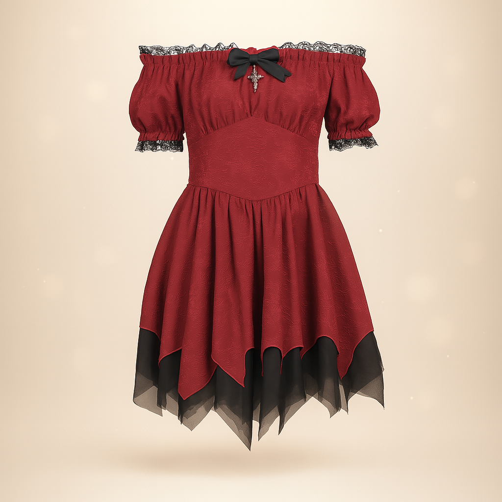 - Elegant off-the-shoulder design with a delicate lace trim.