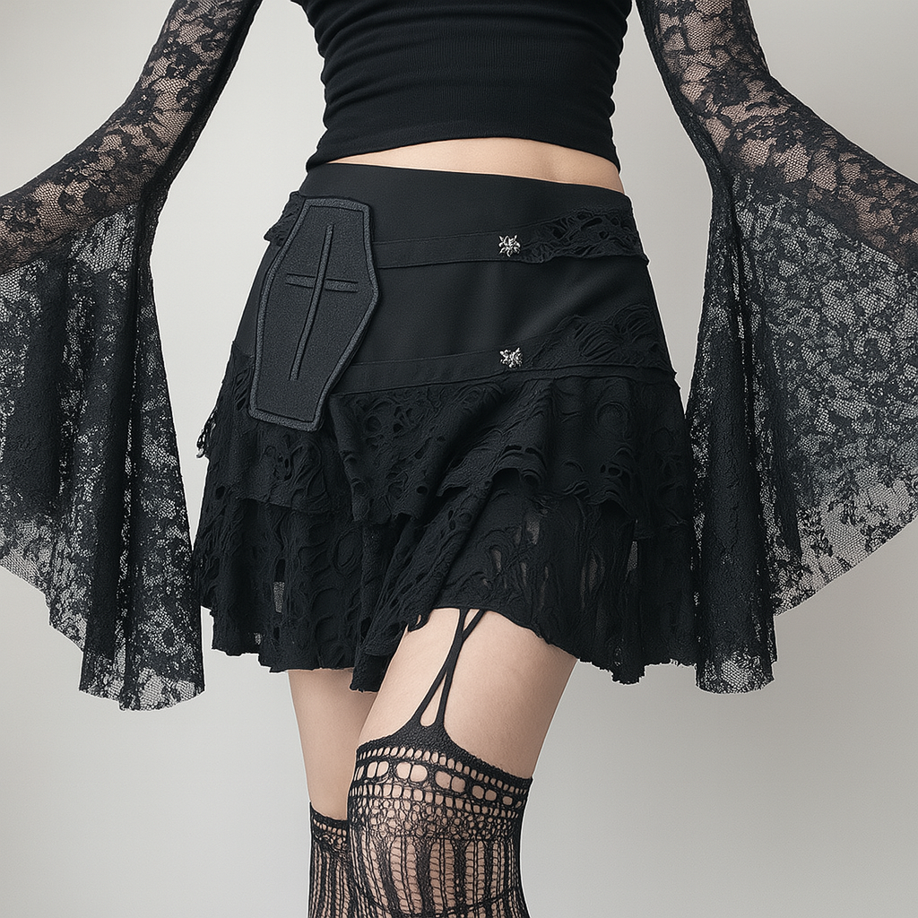 Gothic Layered Cake Skirt with Cross Embellishment