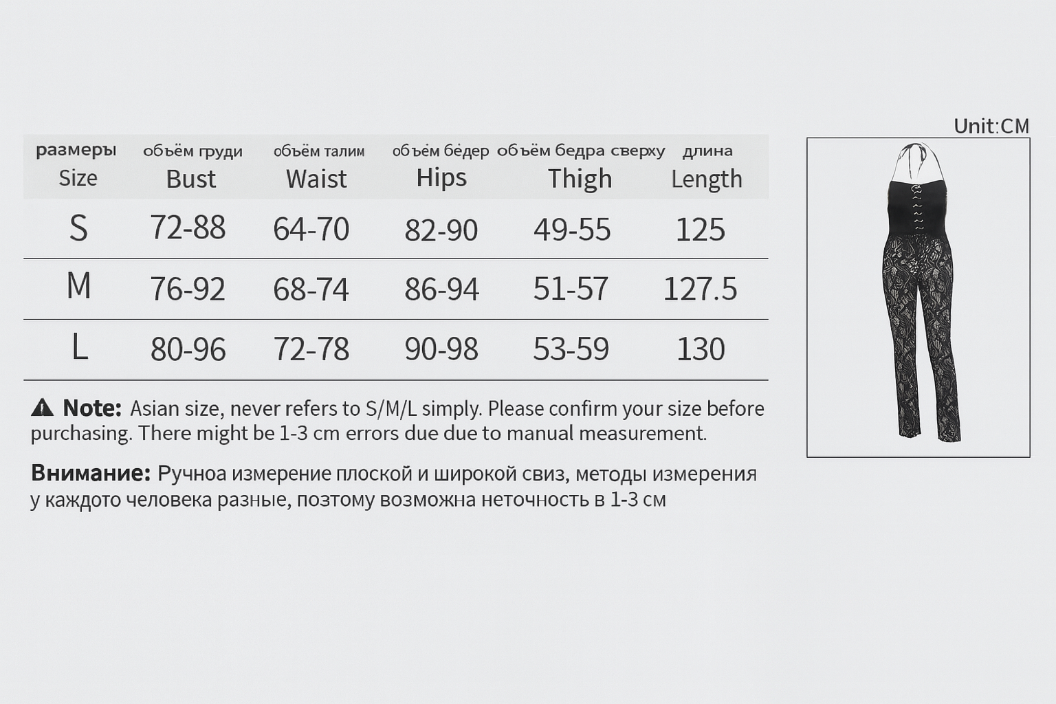 Gothic Sheer Lace Jumpsuit with Lace-Up Details