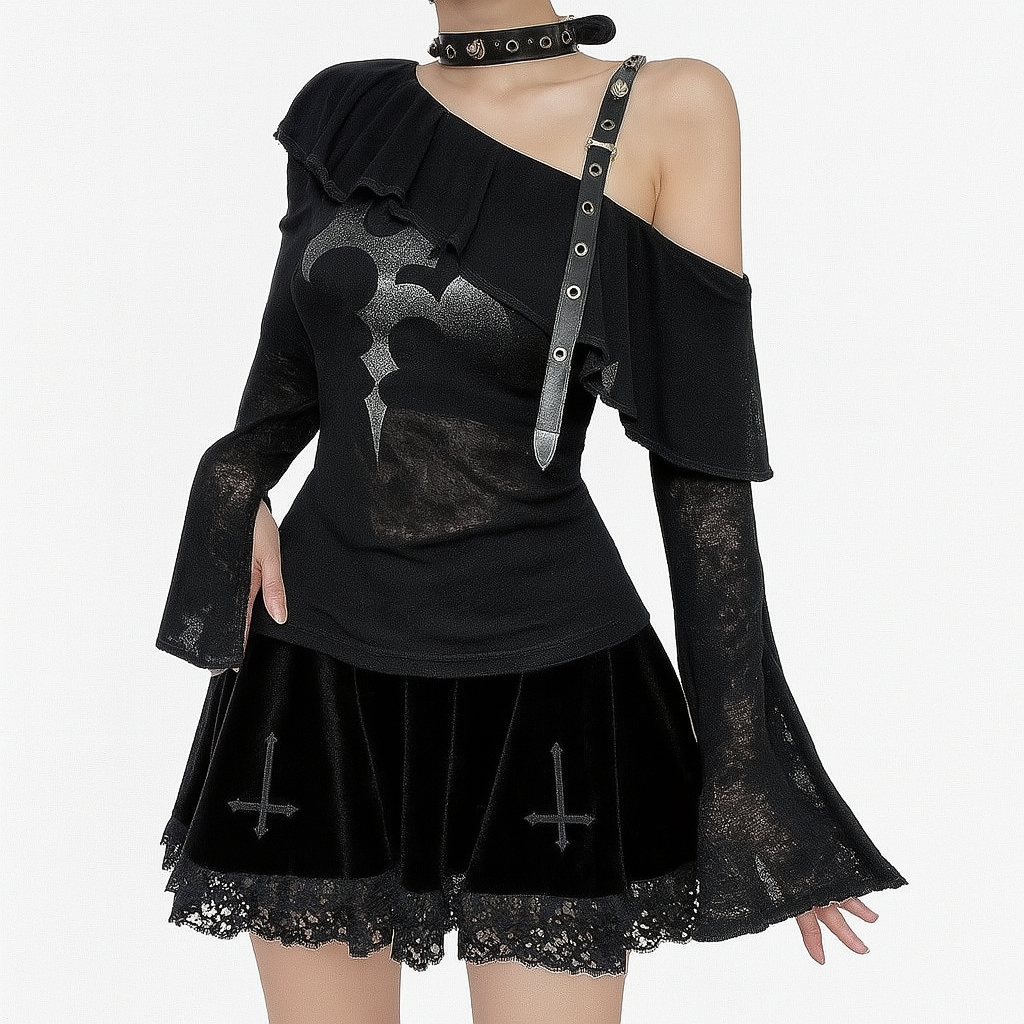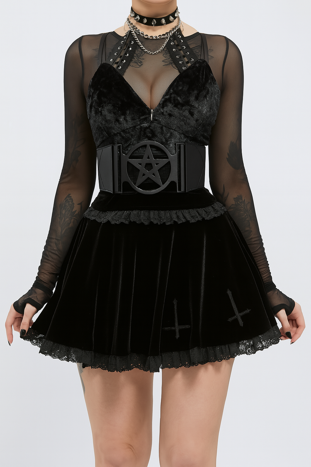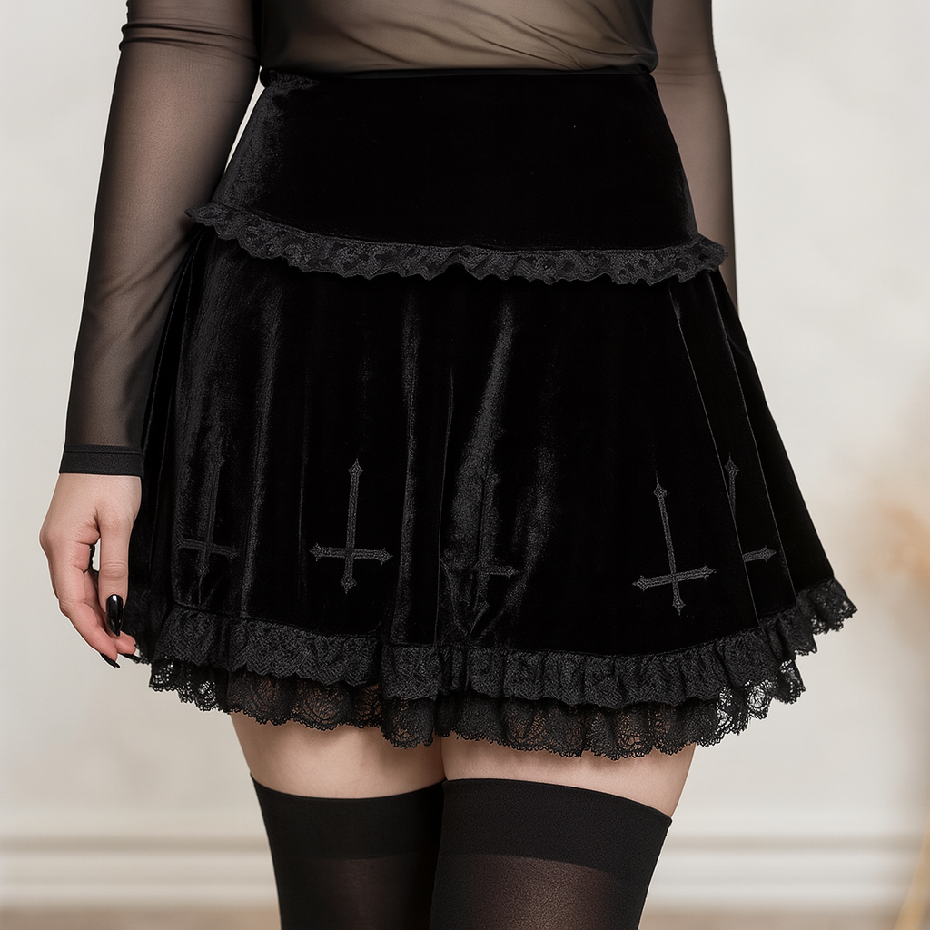 HIGH WAIST EMBROIDERED LACE SKIRT.
