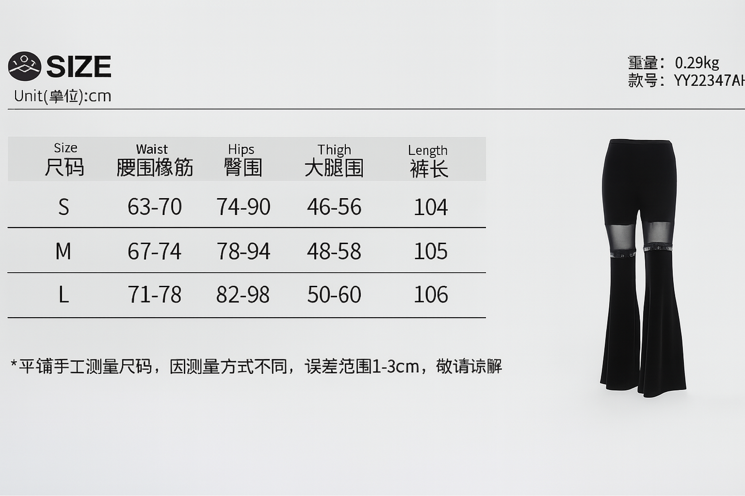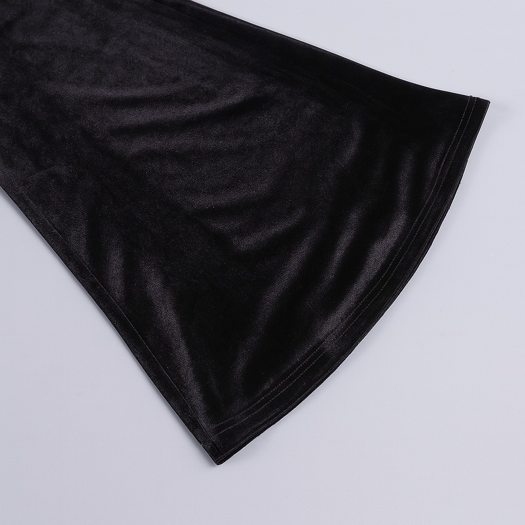 - Flare cut with subtle bell bottoms, perfect for dark romantic fashion.