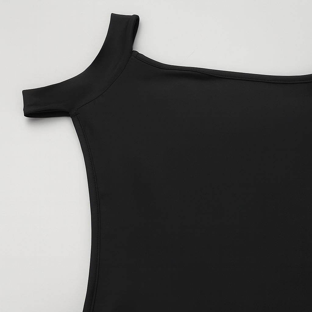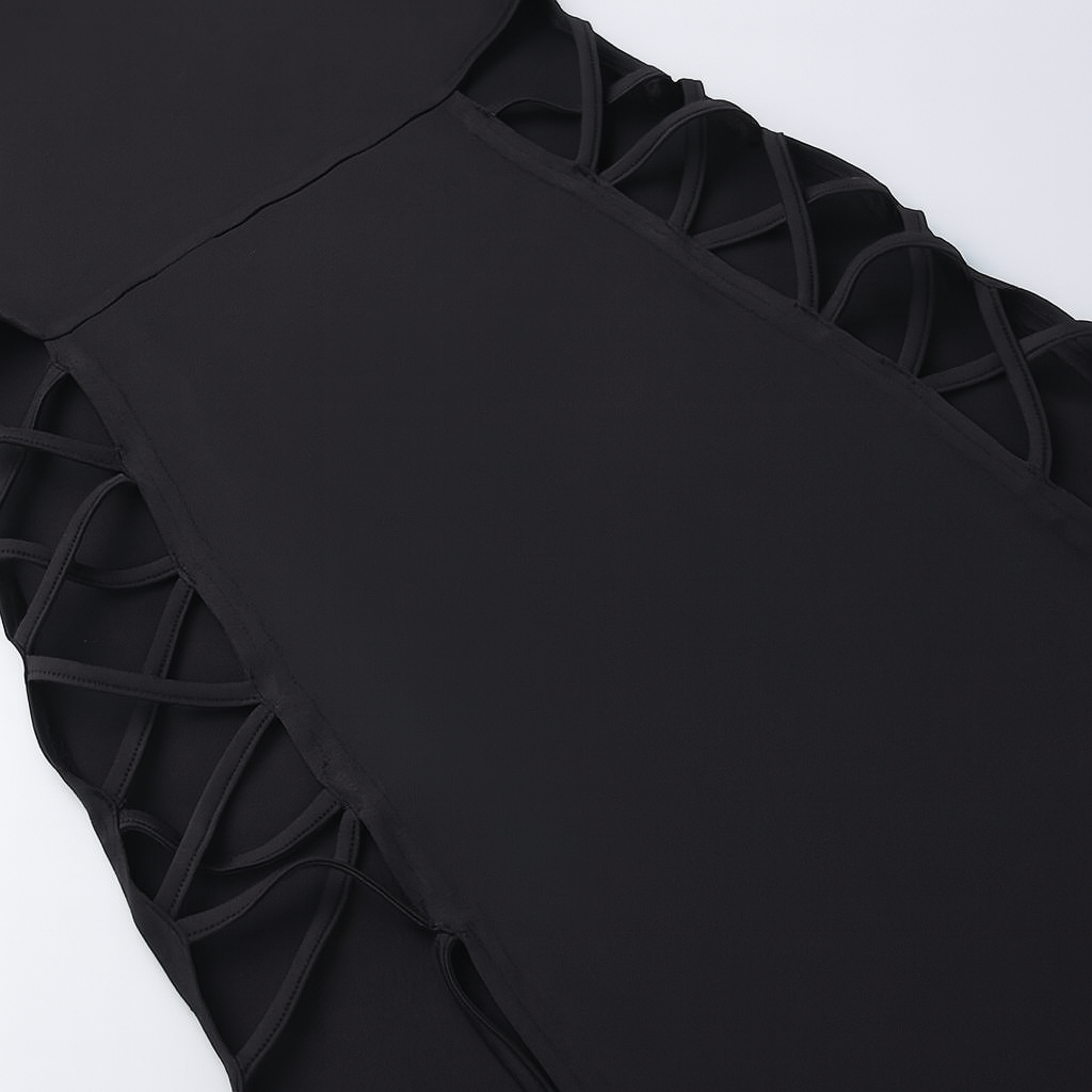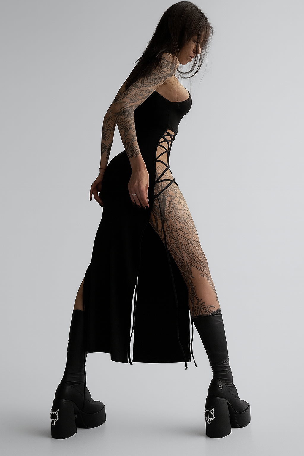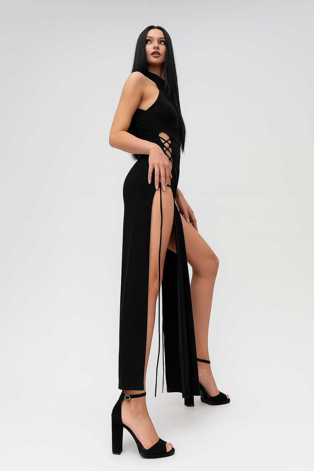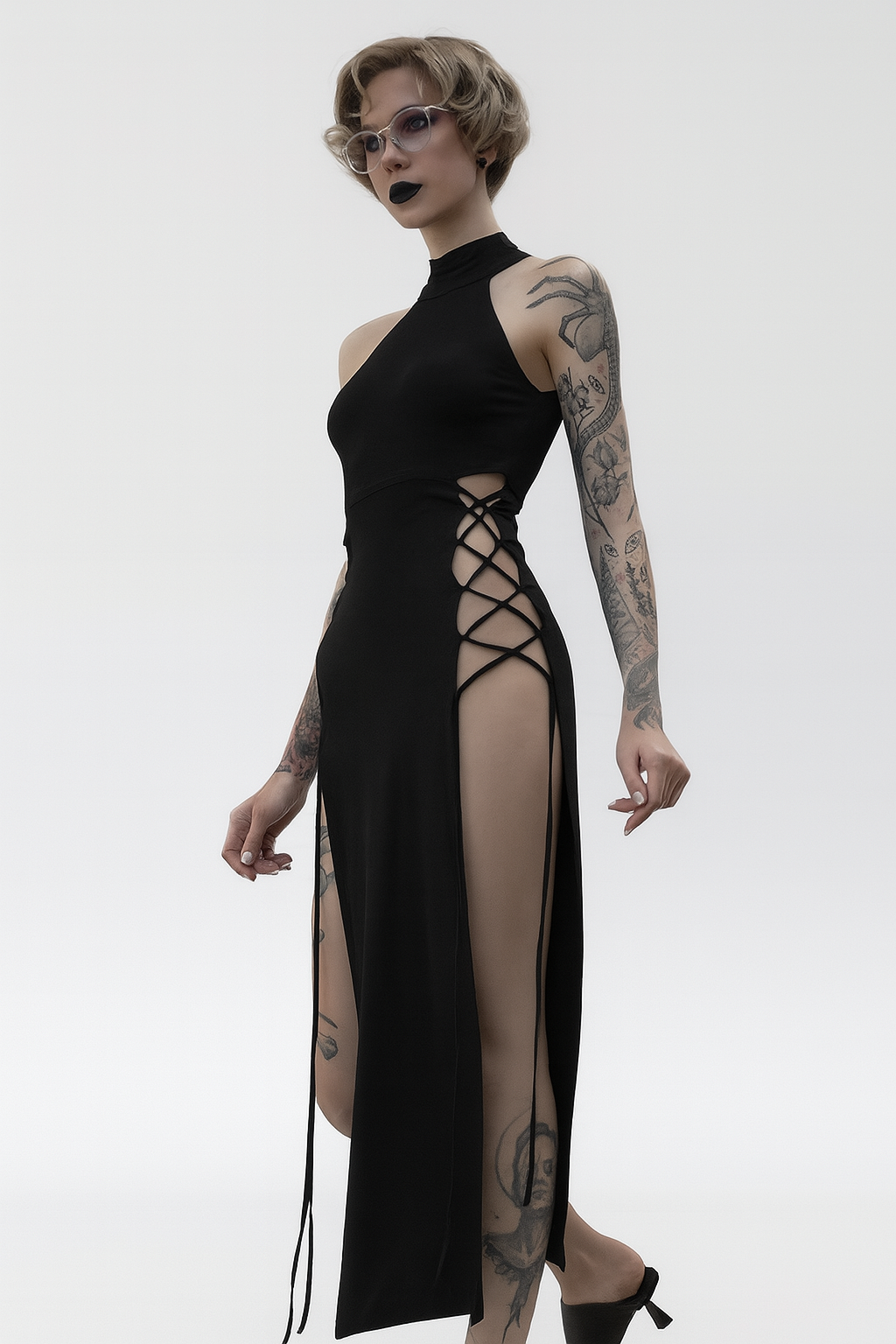 KNIT HIGH-NECK SLEEVELESS DRESS.