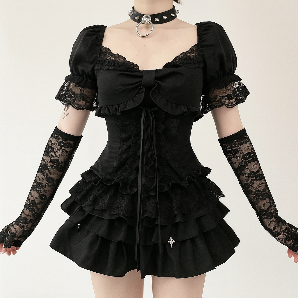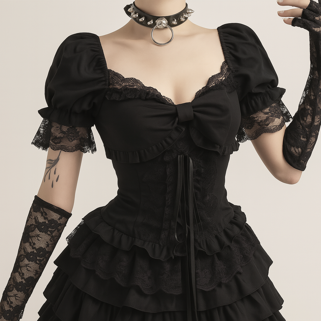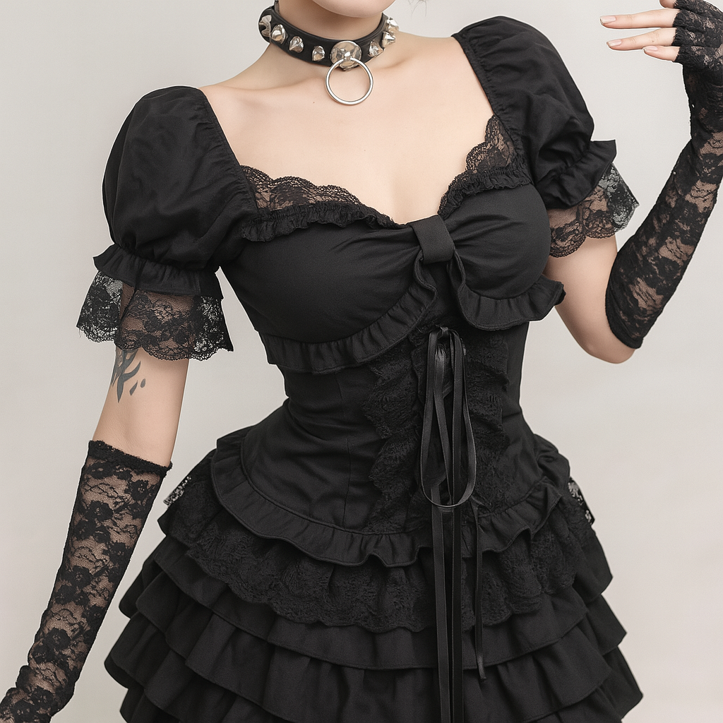 Lace-Up Gothic Ruffle Shirt for Alternative Fashion