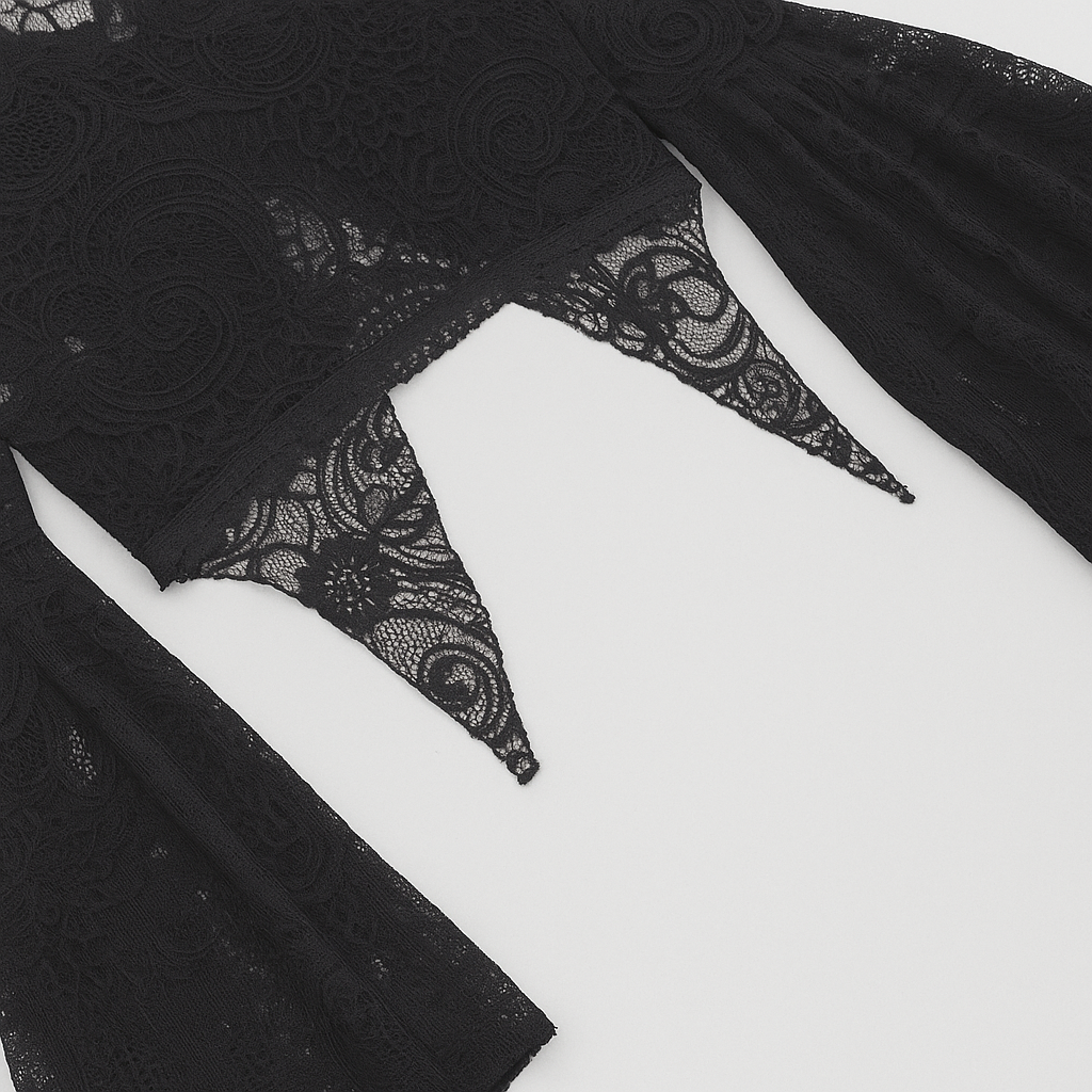 Occult Luxury Lace Crop Top with Flared Sleeves