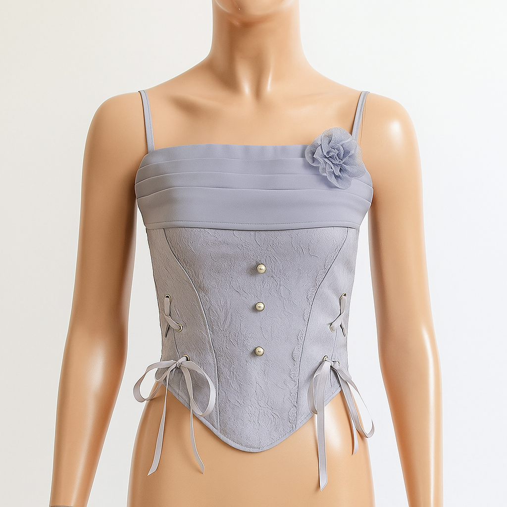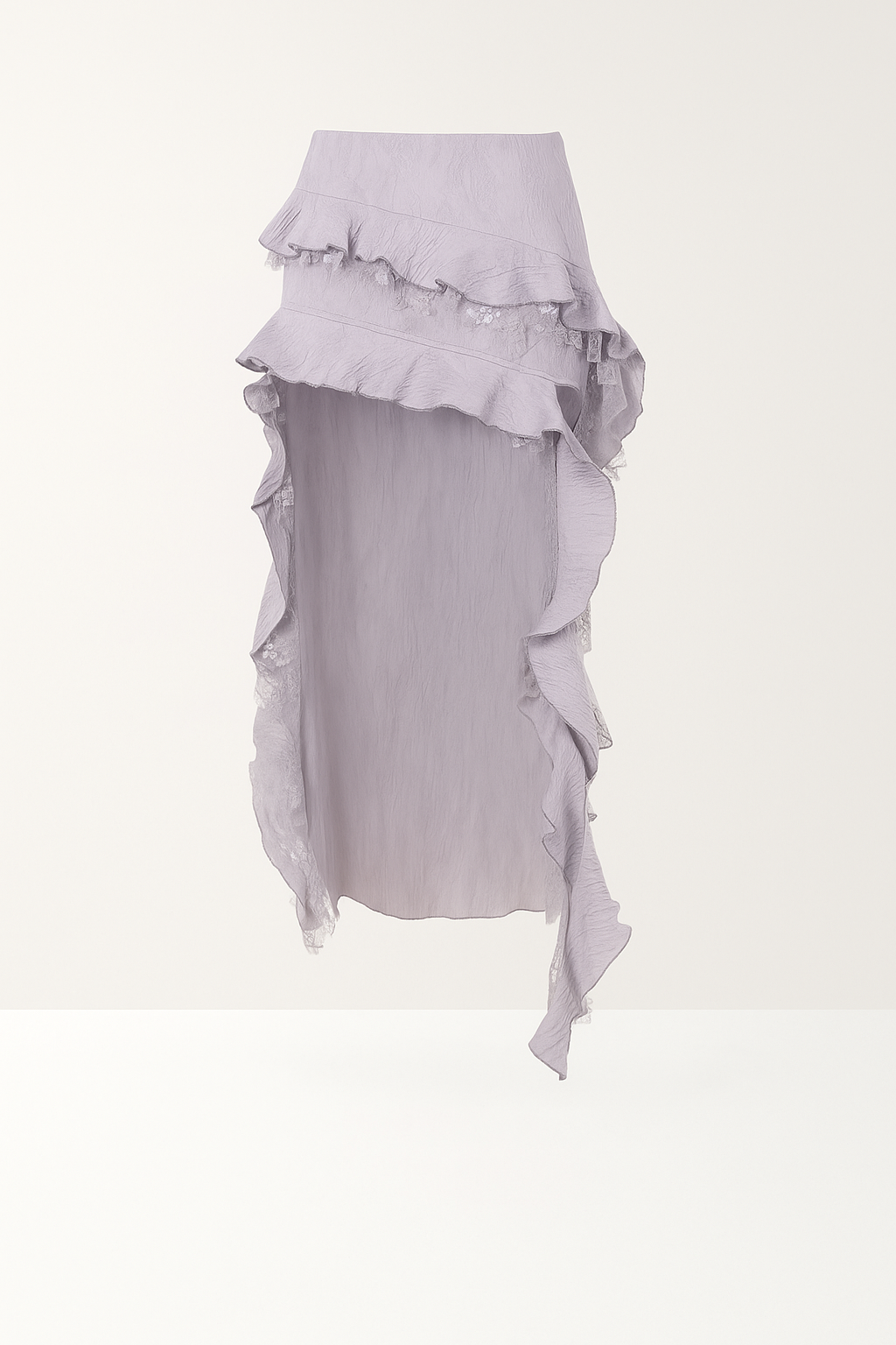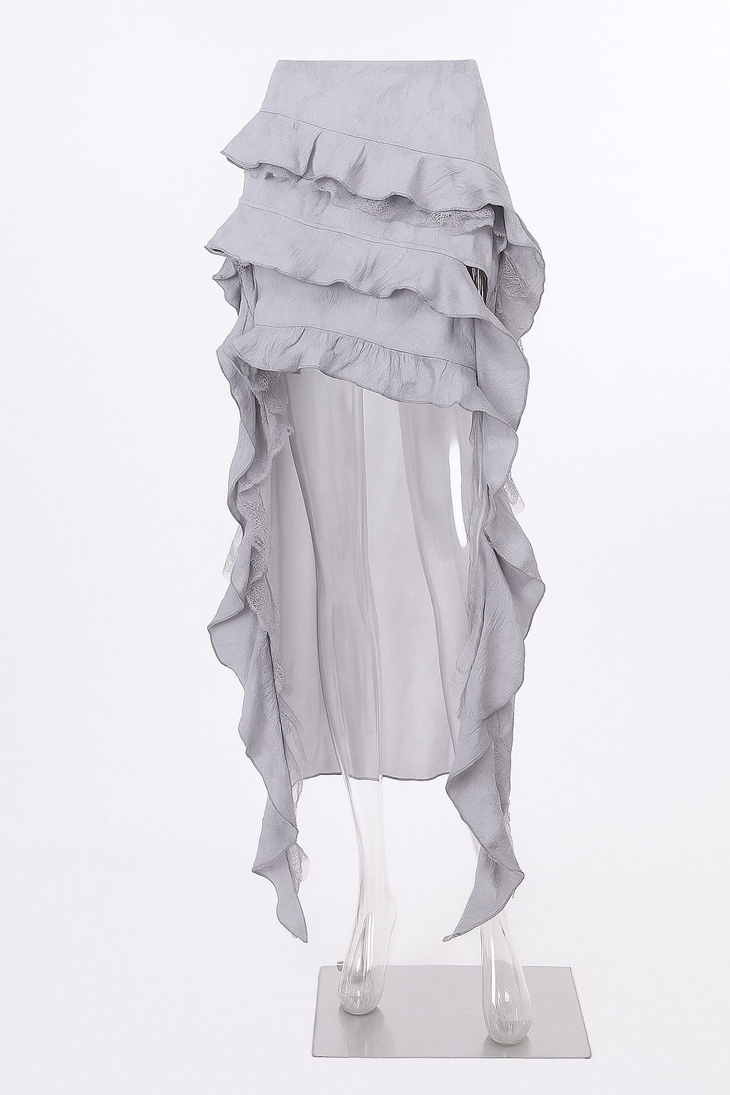 SILVER GRAY FLORAL IRREGULAR SKIRT SET.