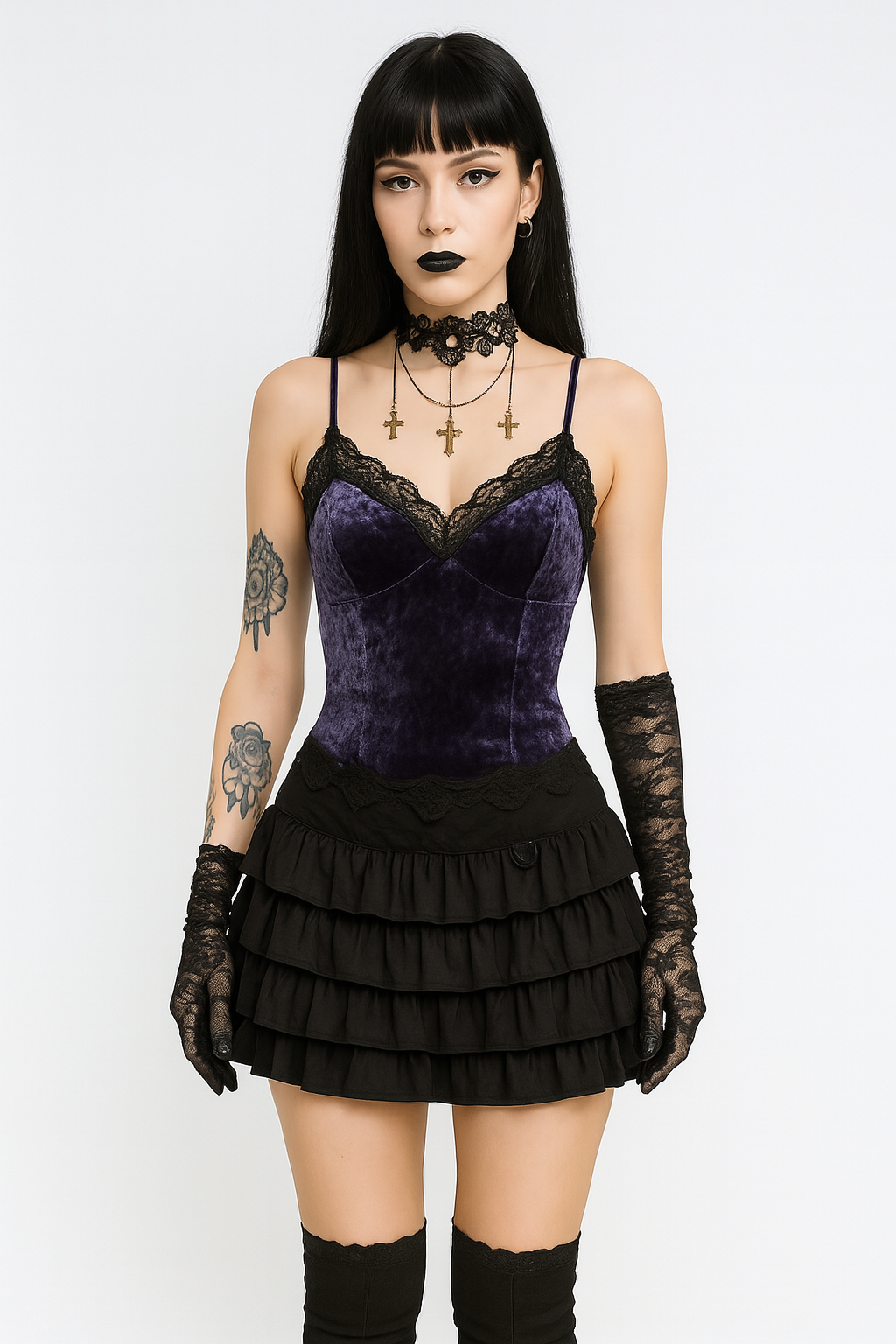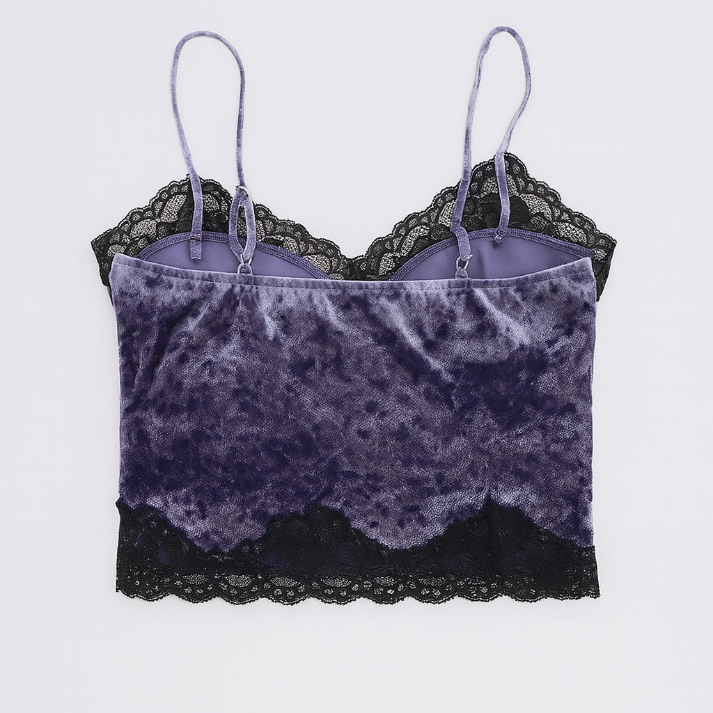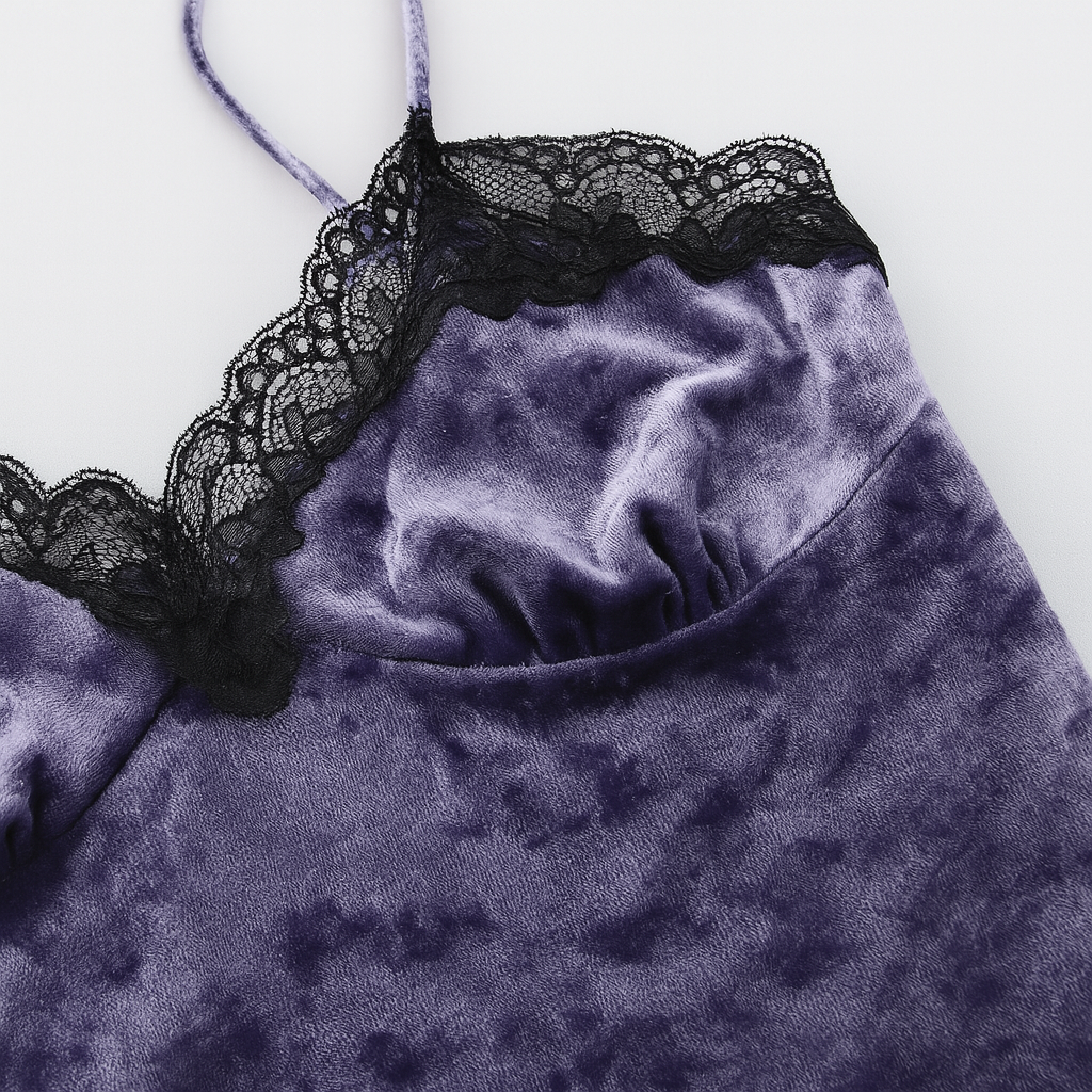 VELVET VIXEN – GOTHIC LACE VELVET STRAP TOP.