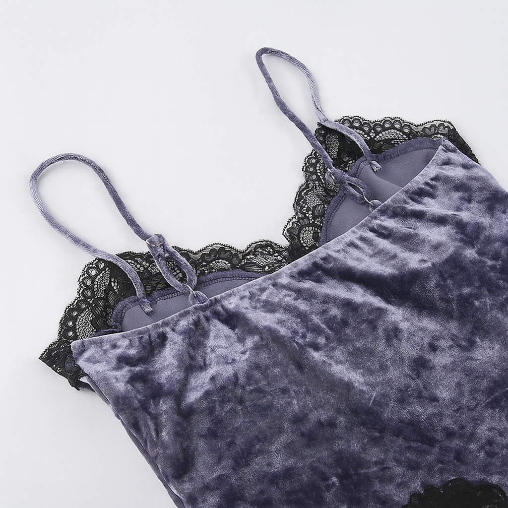 Velvet Vixen Gothic Lace Velvet Strap Top