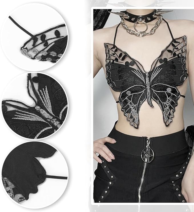 - Stunning butterfly lace design perfect for alternative fashion lovers.
