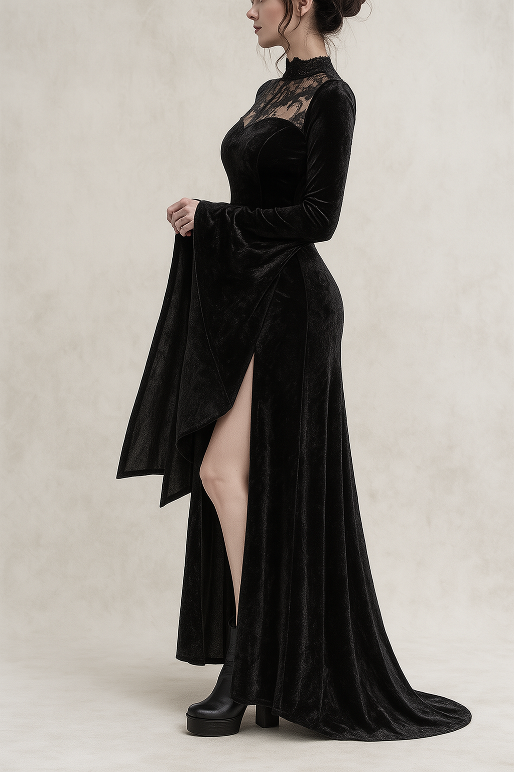 Witchy Lace Slit Maxi Dress for Gothic Elegance